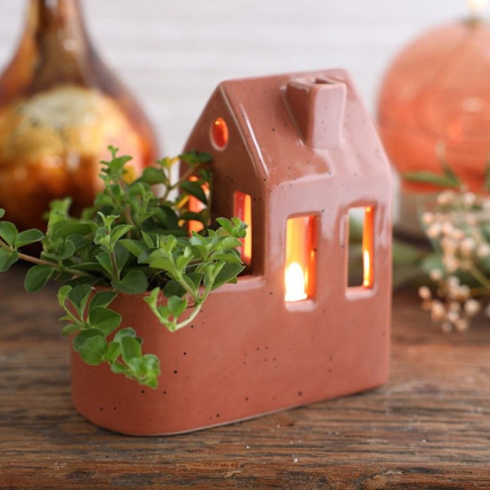 Okouzlující keramický domek 2v1 slouží jako obal na květináč i svícen, díky čemuž se stane univerzálním a stylovým doplňkem vašeho domova. Vyrobený z kvalitní keramiky v módní barvě růžové terakoty, která dodá interiéru jemný a hřejivý nádech. Díky svému univerzálnímu designu můžete dovnitř umístit malou rostlinu, sukulent nebo čajovou svíčku jejíž světlo pak krásně prosvítá okénky domku a vytváří útulnou atmosféru.