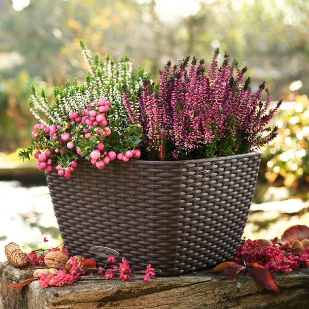 Stylový a praktický květináč Lechuza BACINO Cottage spojuje elegantní vzhled s moderními technologiemi péče o rostliny. Charakteristická struktura imitující ratan dodá vašemu interiéru, terase i balkonu útulnou atmosféru, zatímco integrovaný samozavlažovací systém Lechuza zajistí optimální přísun vody bez každodenní péče. Do květináče se vejde 6litrů zeminy a 2 litry vody.
