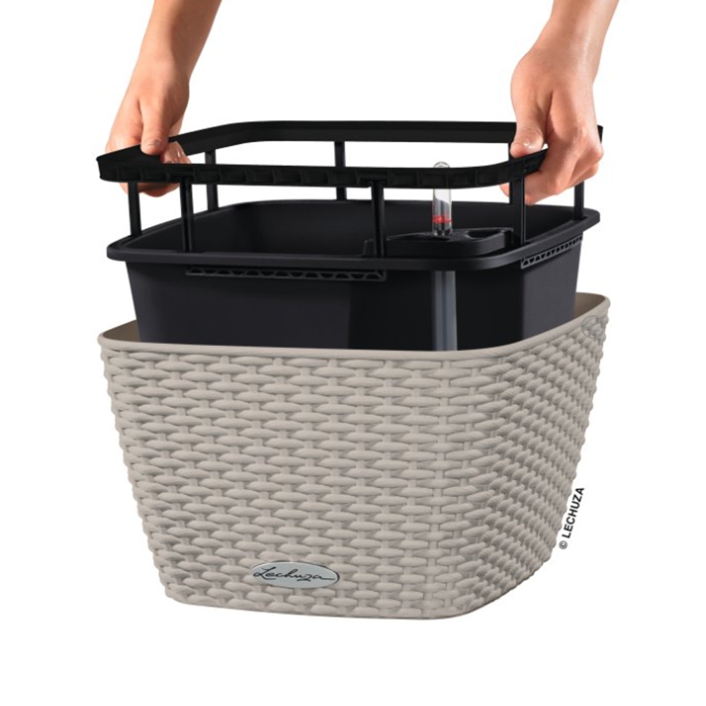 Stylový a praktický květináč Lechuza BACINO Cottage spojuje elegantní vzhled s moderními technologiemi péče o rostliny. Charakteristická struktura imitující ratan dodá vašemu interiéru, terase i balkonu útulnou atmosféru, zatímco integrovaný samozavlažovací systém Lechuza zajistí optimální přísun vody bez každodenní péče. Do květináče se vejde 6litrů zeminy a 2 litry vody.