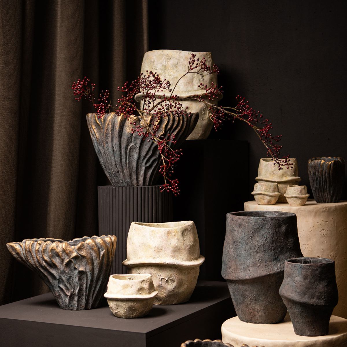 Váza VAKAS je originálním interiérovým doplňkem pro všechny, kteří milují moderní a neobvyklý design. Je vyrobena z pevného cementu a její výrazná zvlněná struktura dodává prostoru dynamiku, charakter a umělecký nádech. V kombinaci s přírodními tóny cementu působí minimalisticky, ale zároveň velmi sofistikovaně.