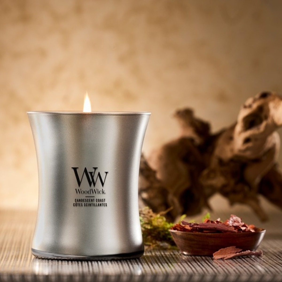 (Candescent Coast) Jasné mořské tóny se mísí s vůní bílého teaku a mechu a vytvářejí jemnou pobřežní vůni.