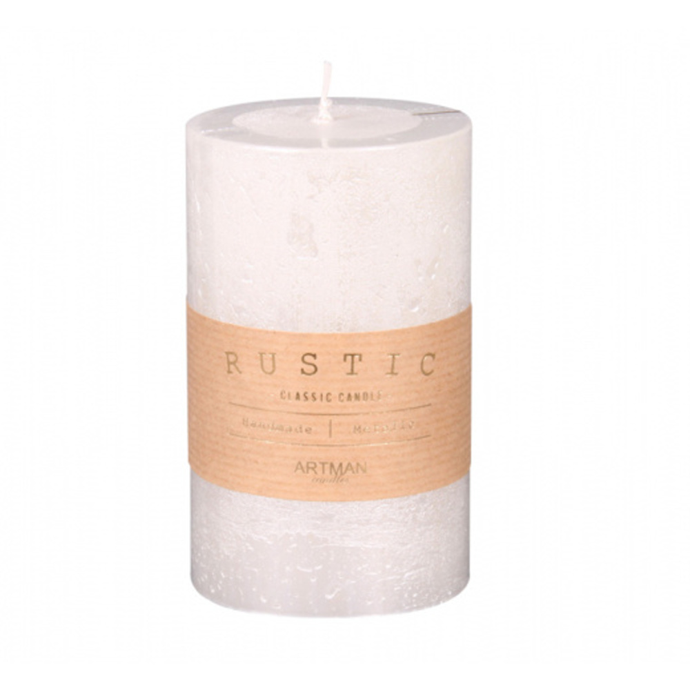 Svíčka válcová RUSTIC metalická bílá 12cm