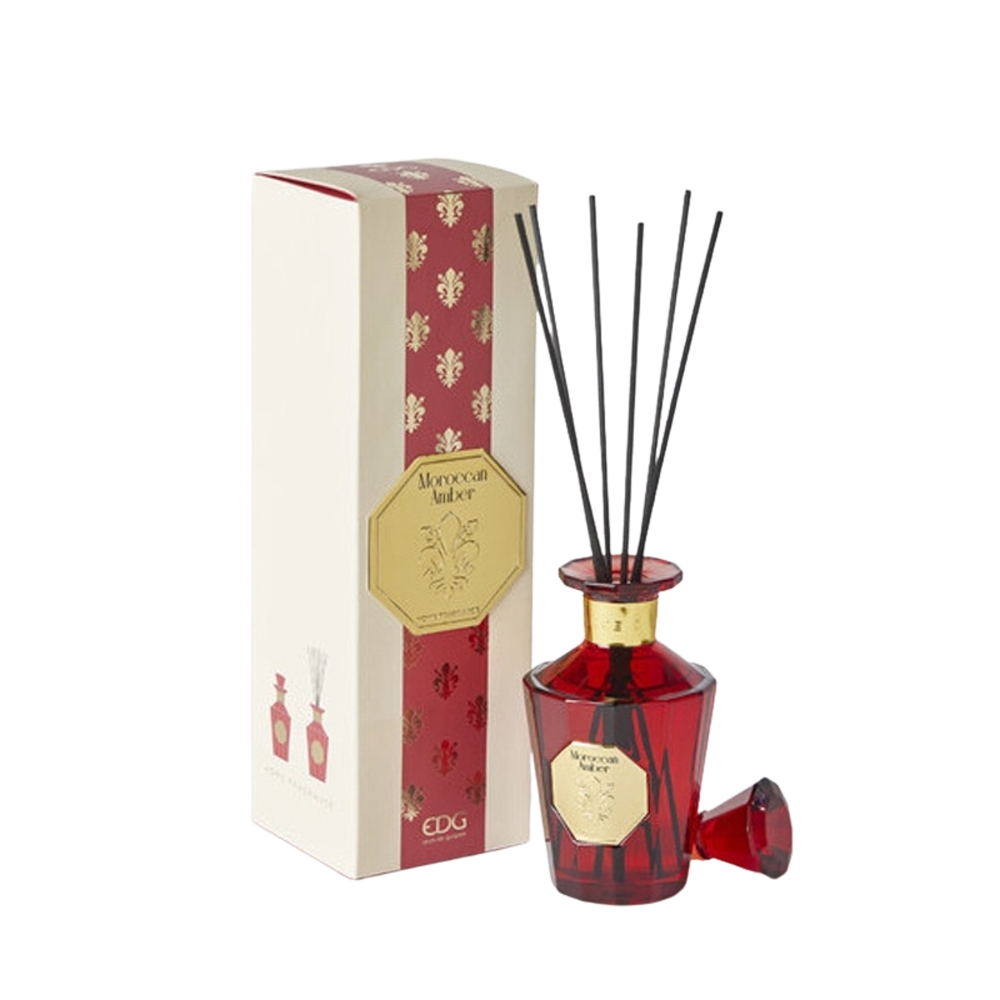 Difuzér GOLDLILY Moroccan Amber přináší do vašeho domova teplou, smyslnou atmosféru inspirovanou dalekým Marokem. Jemně uvolňovaná vůně dokáže proměnit každý prostor v oázu klidu a luxusu bez použití plamene či elektrických zařízení – stačí vložit rákosová stébla do vonné esence a nechat vůni volně proudit. Difuzér je vhodný pro provonění menších prostor. Intenzitu vůně můžete ovlivnit množstvím použitých stébel.