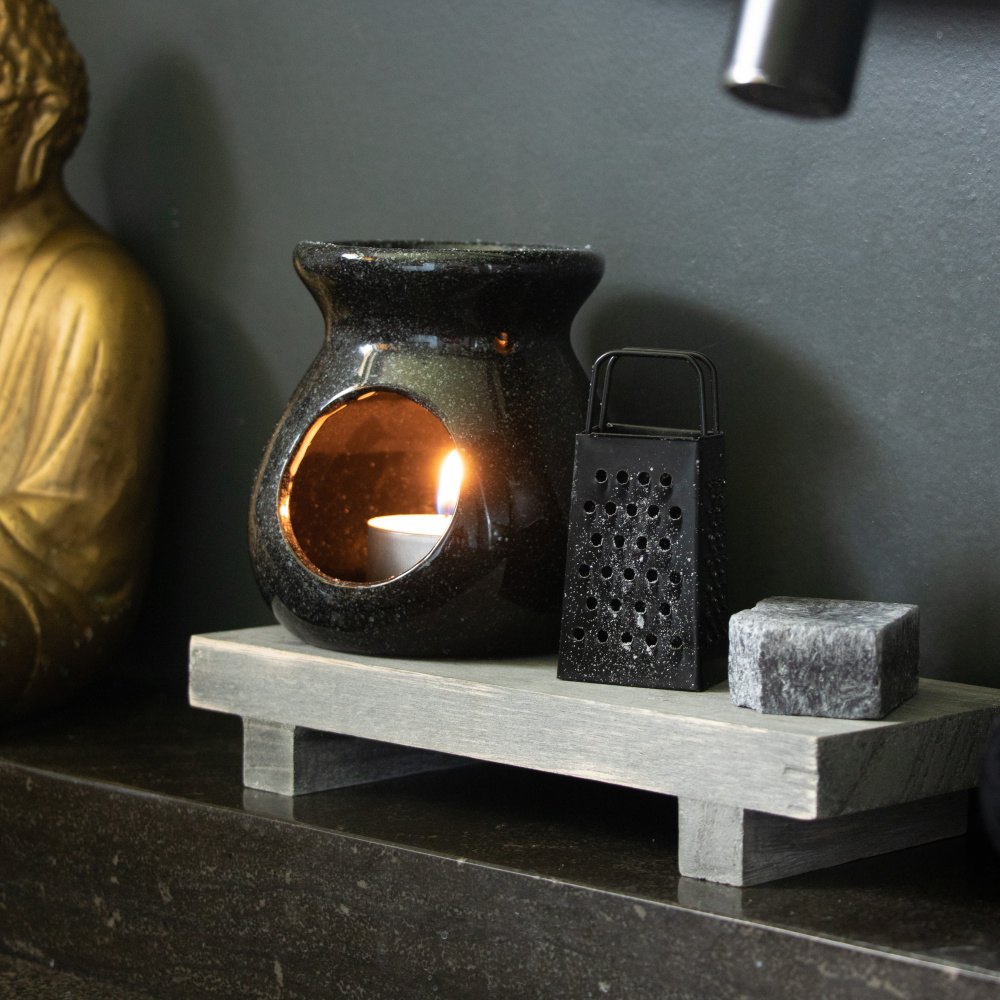 Dárková sada aromalampy, struhadla, prkénka a vonného vosku. Tato elegantní dárková sada VESUVIUS potěší každého milovníka vůní a relaxace. Stylová keramická aromalampa v černé barvě se spolu s vonným voskem postará o příjemnou atmosféru vašeho domova.