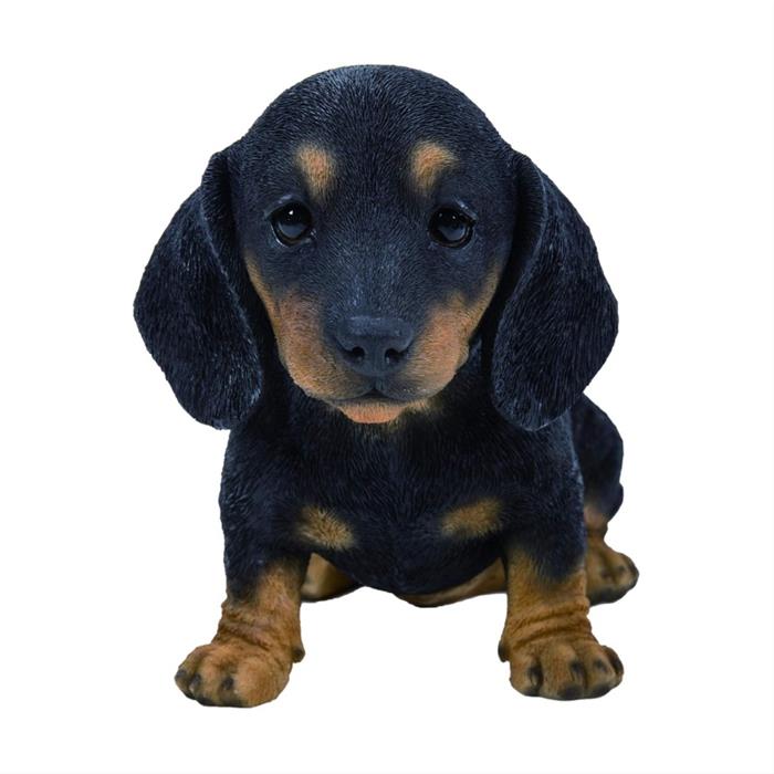 Věrohodná figurka štěněte jezevčíka. Polyresinová figurka je propracovaná do posledního detailu včetně srsti, očí, záhybů. Vhodná do interéru i exteriéru, mrazuvzdorná.