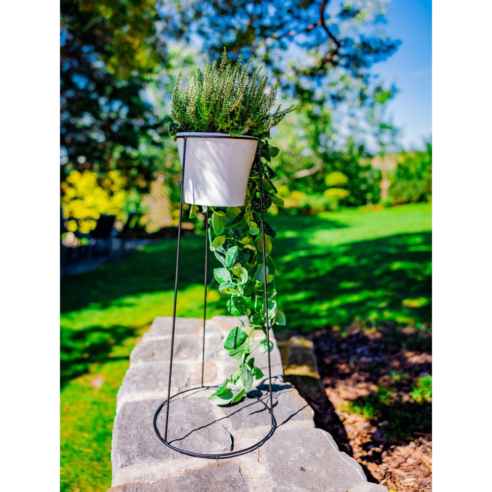 Jednoduchý kovový stojan na květináč, který vkusně doplní vaši terasu či vchod do domu.Úprava materiálu: před lakováním povrchu probíhá tryskání ocelových broků a automatické odmaštění/fosfátování, poté lakování v práškové lakovně a následně vypalování při cca 200 °C po dobu cca 20 minut. Výsledkem je hladká, antikorozní barva a celoroční užívání na zahradě.
