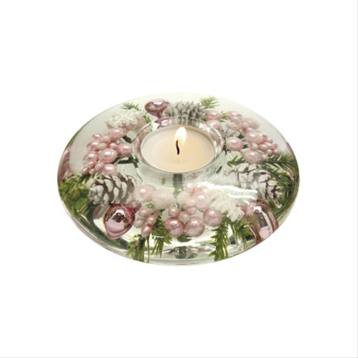 Gelový svícen s červenými doplňky na čajovou svíčku.