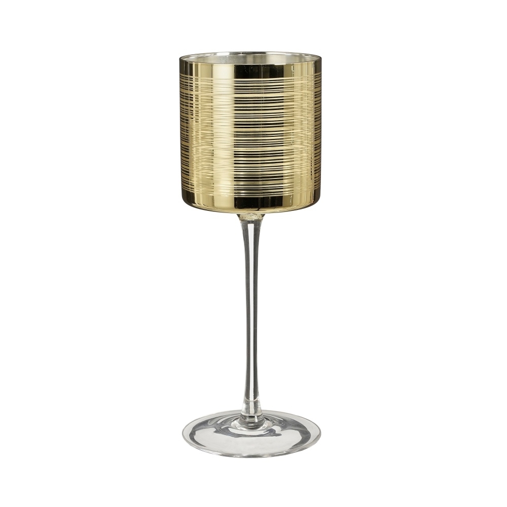 Skleněný svícen na čajovou svíčku. Nenechávejte svíčku hořez bez dozoru.