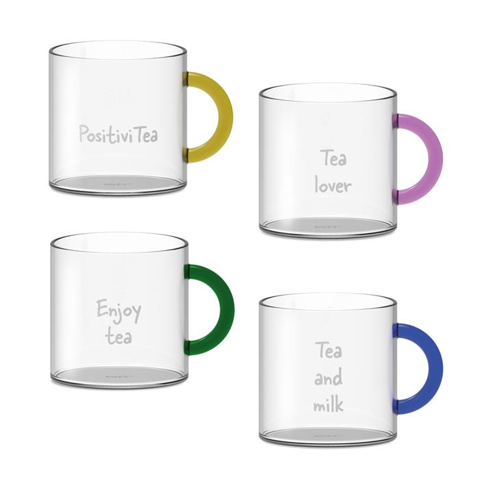 Praktická a elegantní sada čtyř hrnků z borosilikátového skla je ideální pro každodenní používání. Čiré sklo nechává vyniknout barvu nápoje a moderní design ladí s každou kuchyní.