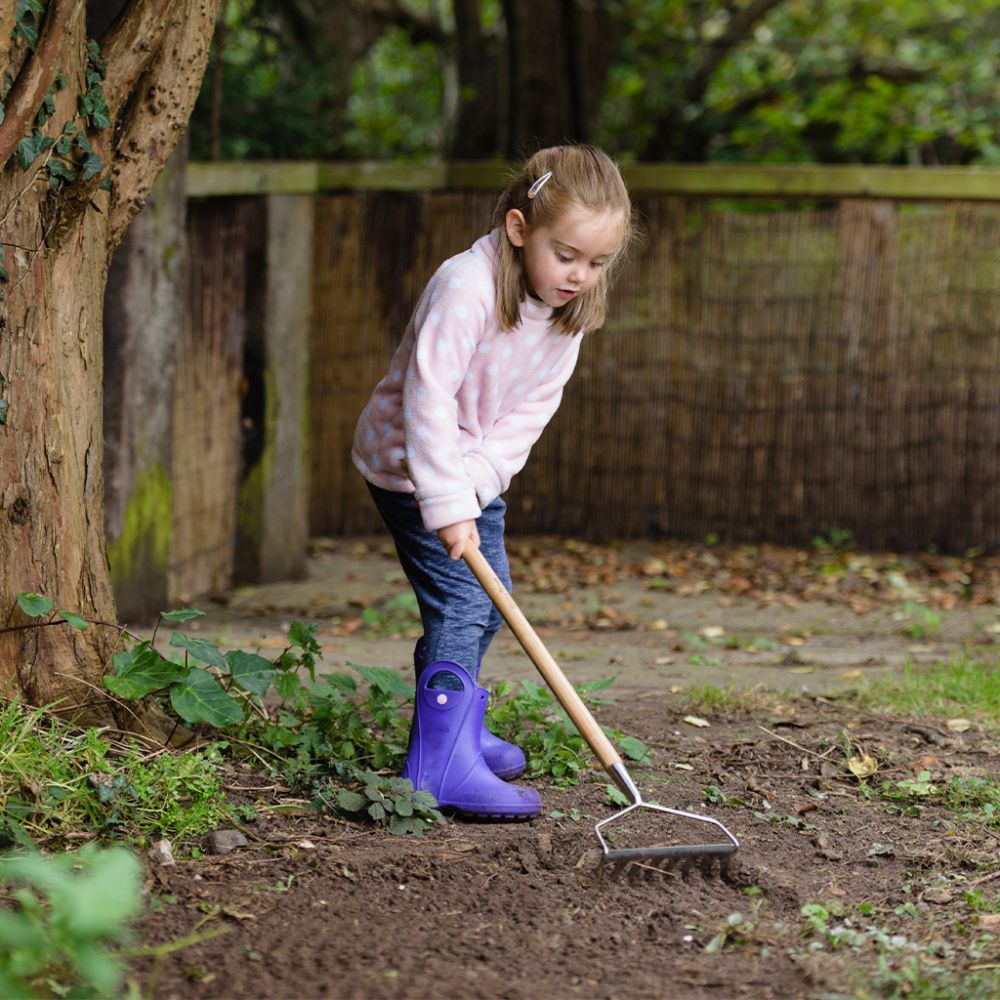 Dětské zahradní hrábě jsou ideální pro malé zahradníky. Zaoblené hroty umožňují bezpečné a snadné použití pro děti od 4 let pod dohledem dospělých. Jsou vyrobeny z vysoce kvalitní nerezové oceli, která má vysokou odolnost proti korozi a minimální přilnavost k půdě. Násada je vyrobena z jasanového dřeva.