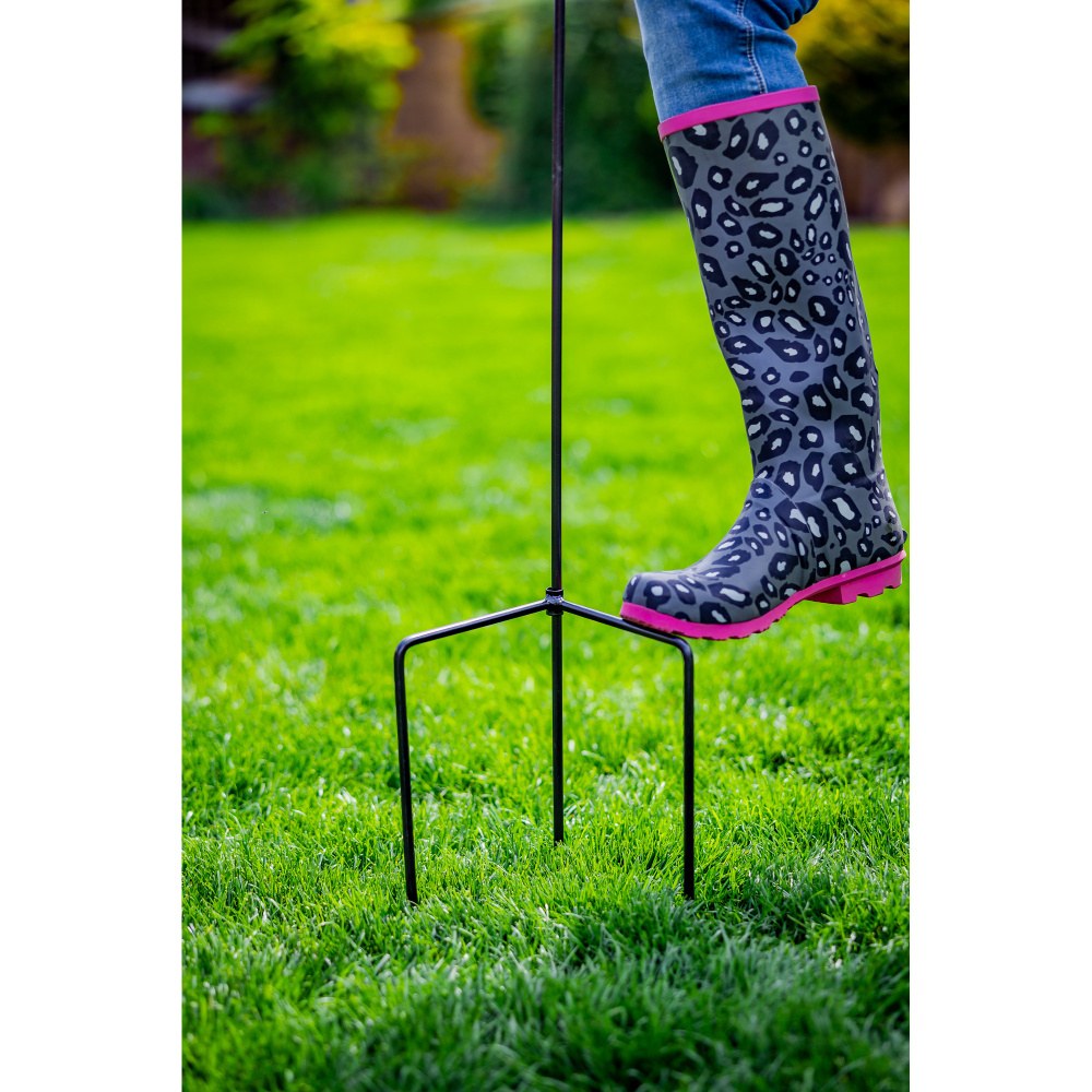 Pevná kovová přídavná noha k zápichu pro větší stabilitu, která je odolná korozi a změnám počasí. Úprava materiálu: před lakováním povrchu probíhá tryskání ocelových broků a automatické odmaštění/fosfátování, poté lakování v práškové lakovně a následně vypalování při cca 200 °C po dobu cca 20 minut. Výsledkem je hladká, antikorozní barva a celoroční užívání na zahradě.