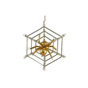 Perličková ozdoba pro interiérovou dekoraciPavučina s pavoukem perličky stříbrná-zlatá 7cm