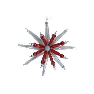 Ozdoba hvězda stříbrno-červená 9cm