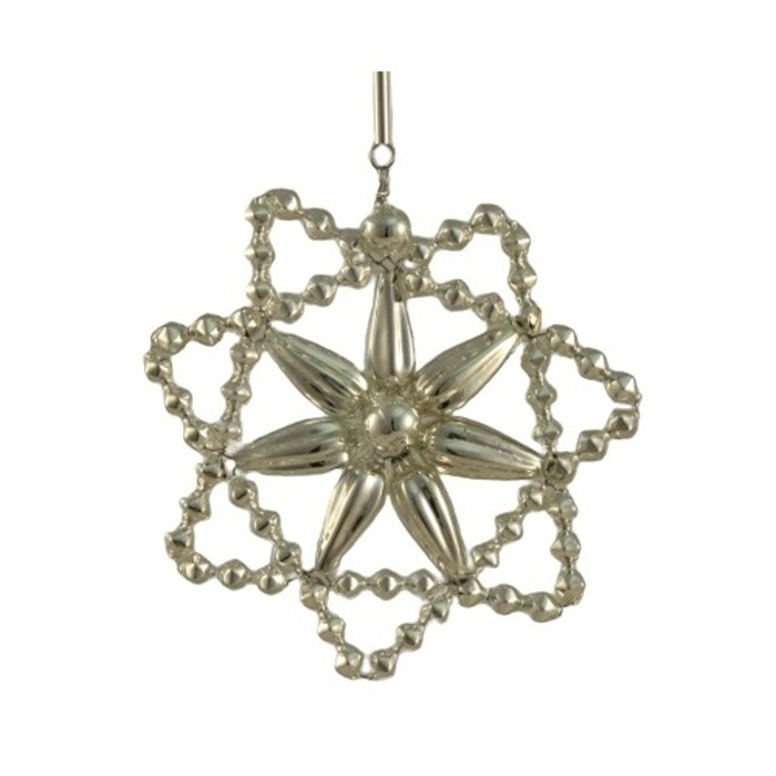 Vneste na svůj vánoční stromeček nádech luxusu a jemnosti s touto perličkovou ozdobou ve tvaru hvězdy v elegantním šampaň odstínu. Hvězdička o průměru 7 cm je ručně vyrobená z drobných perliček, které odrážejí světlo a dodávají dekoraci jemný třpyt.