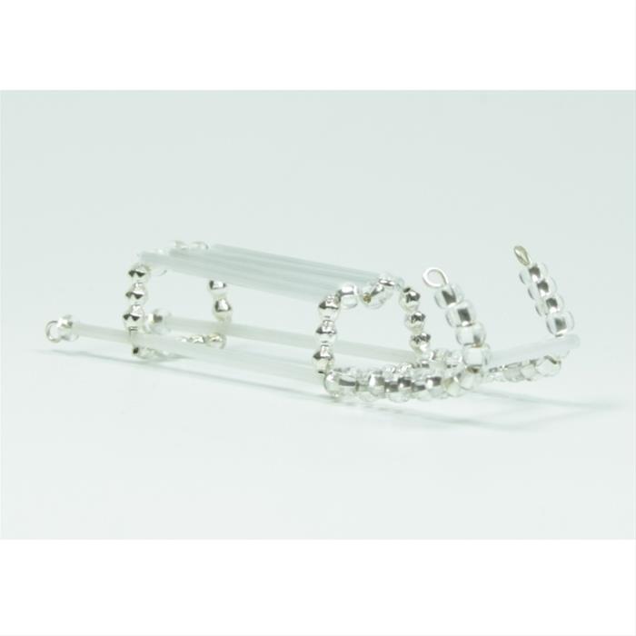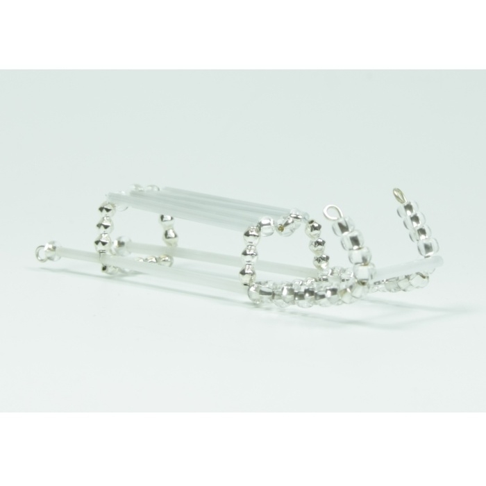 Ručně vyráběná perličková ozdoba ve tvaru sáněk v elegantní stříbrné barvě je kouzelným doplňkem vánoční výzdoby. Tento jemný kousek o délce 8,5 cm vznikl v české dílně tradičním způsobem – z drobných skleněných perliček navlékaných s pečlivostí a láskou k řemeslu. Skvěle vynikne na stromku, ve věnci nebo jako součást slavnostní tabule. Česká kvalita, která potěší.
