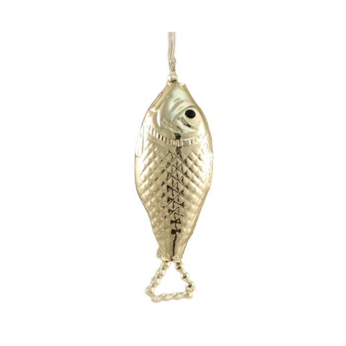 Nádherná vánoční ozdoba ve tvaru kapra, vyrobená z jemného skla a zdobená drobnými perličkami, které jí dodávají jedinečný třpytivý efekt. S velikostí 9 cm je ideální na vánoční stromeček, věnce nebo jiné dekorace.