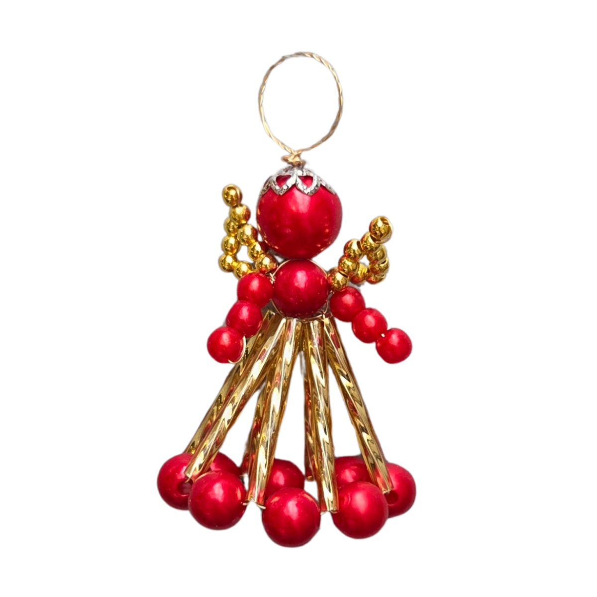 Korálková ozdoba anděla 3D zlato-červená 5cm