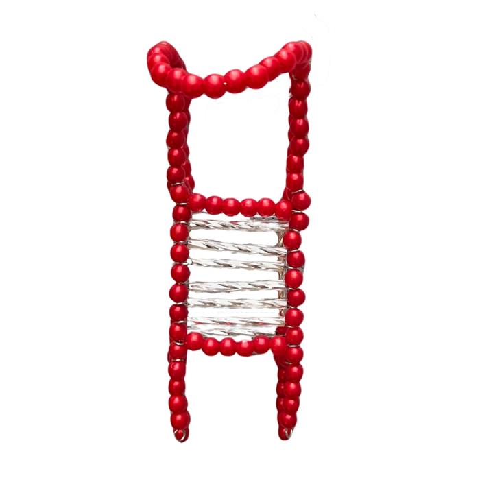Korálková ozdoba sáněk stříbrno-červené 9cm