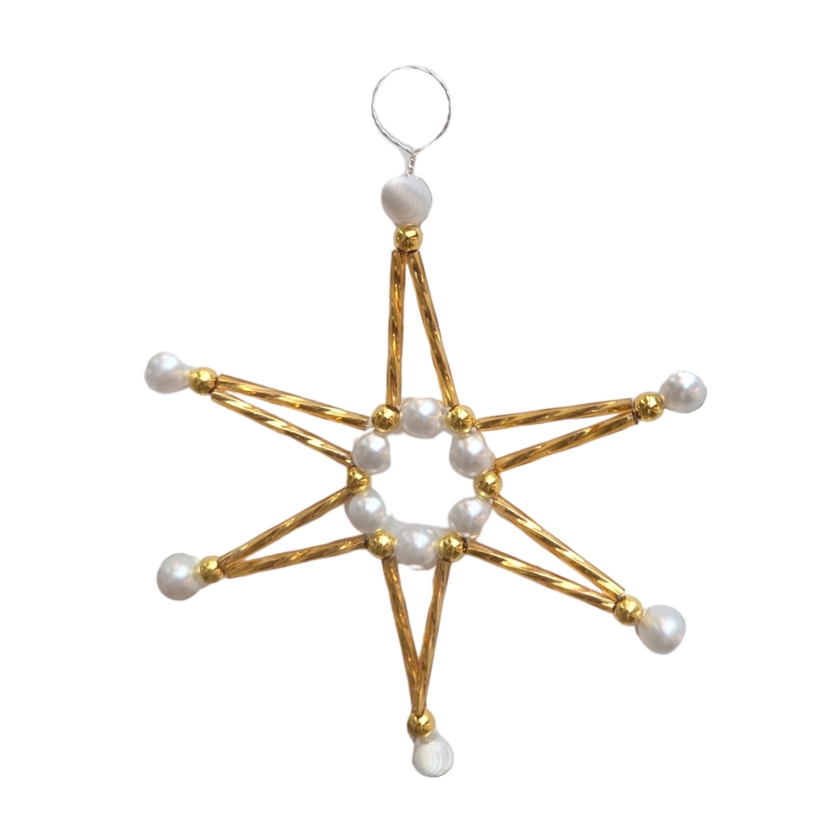 Korálková ozdoba hvězdy bílo-zlatá 9,5cm