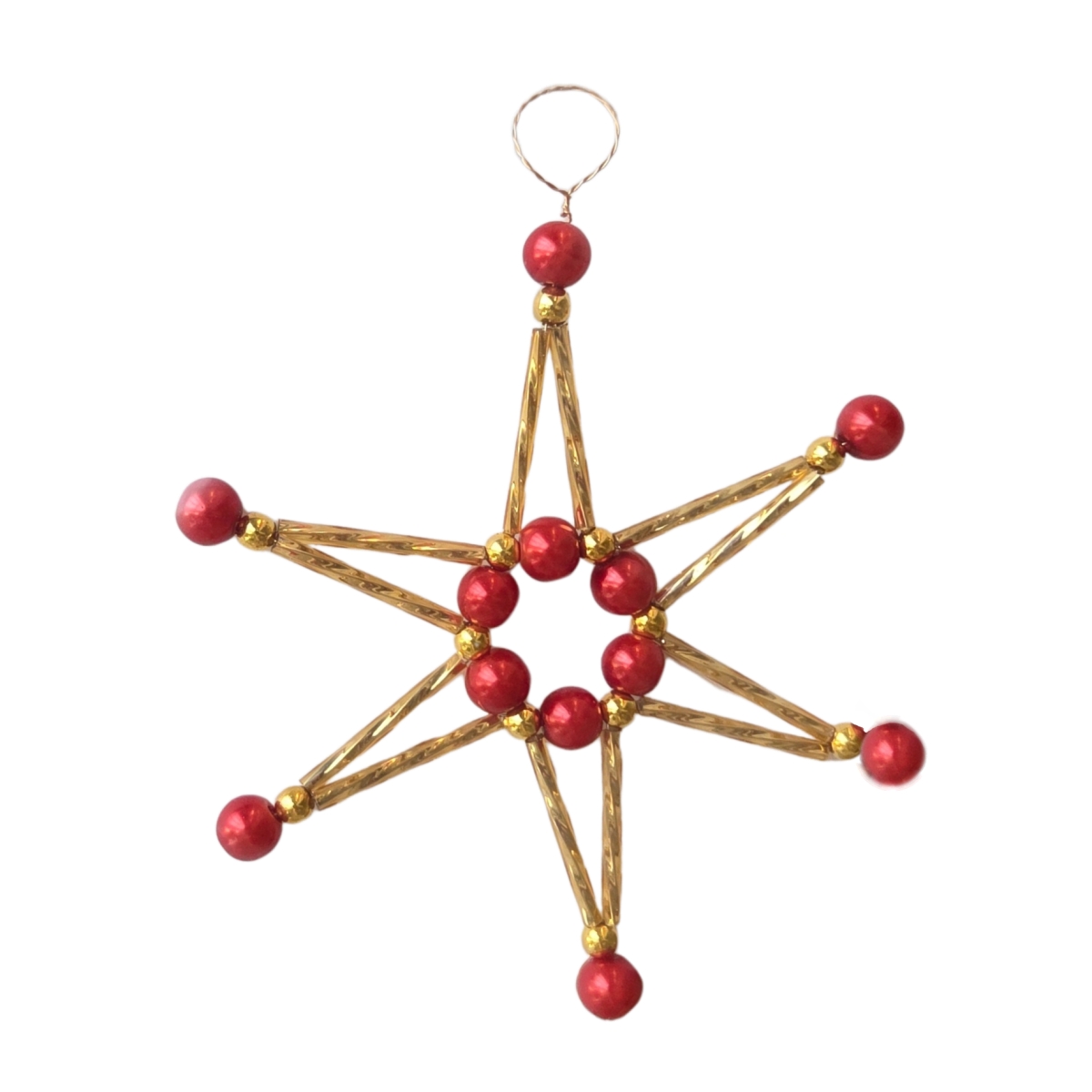 Korálková ozdoba hvězdy červeno-zlatá 9,5cm
