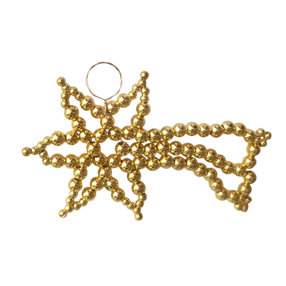 Elegantní korálková kometa o velikosti 7,5 cm je nádhernou ručně vyráběnou ozdobou, která dodá vaší vánoční výzdobě jemný třpyt a dynamiku. Pečlivě navlečené korálky vytvářejí tvar letící komety se zářivým ocasem, který krásně odráží světlo a působí velmi efektně.