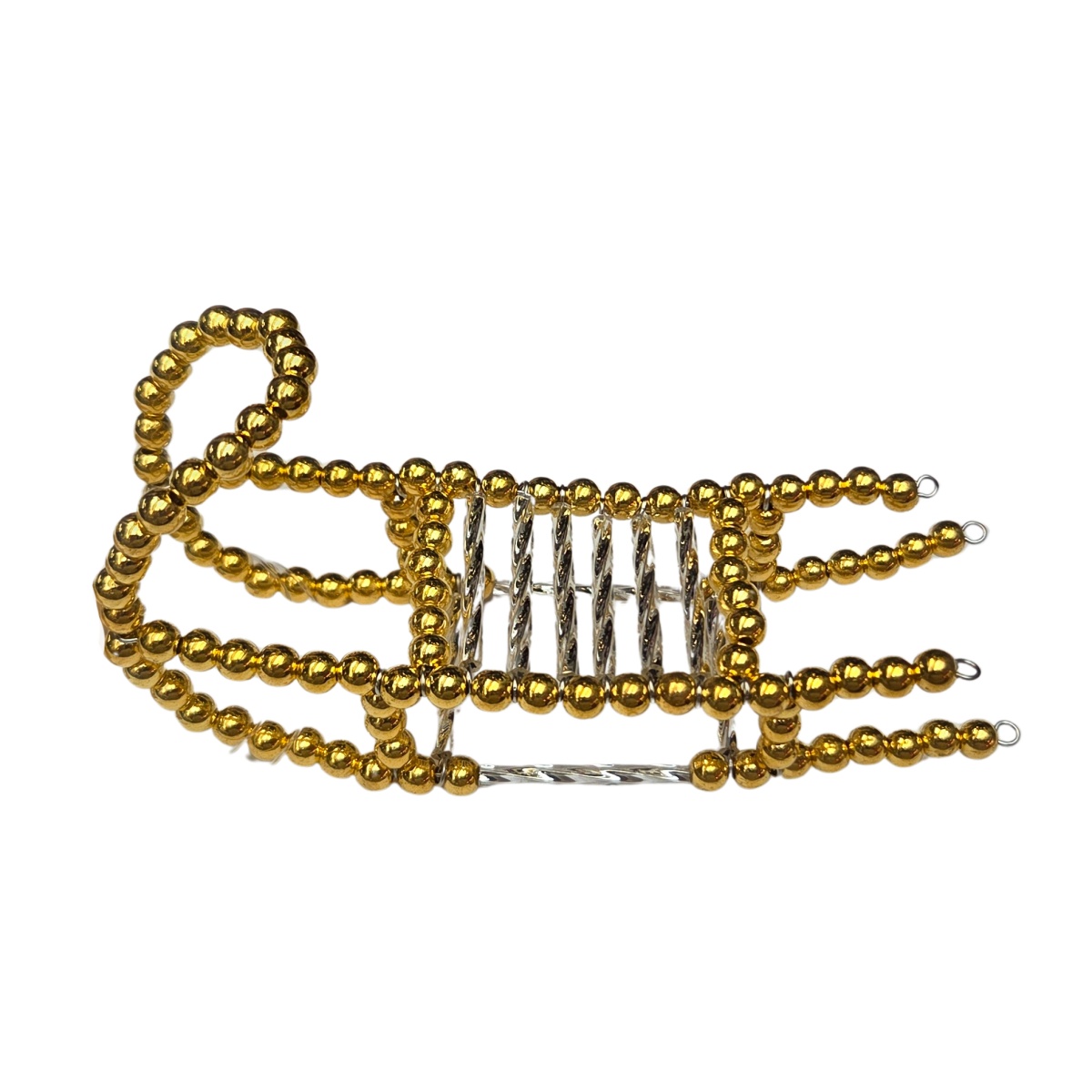 Korálková ozdoba sáněk stříbrno-zlaté 9cm