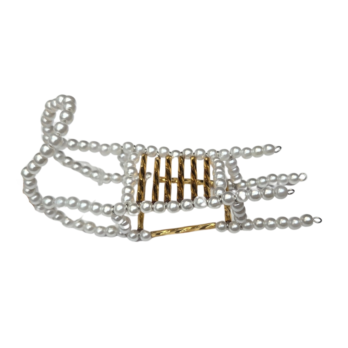 Korálková ozdoba sáněk zlato-bílé 9cm