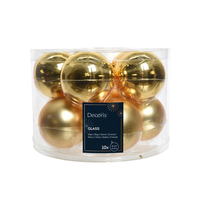 Sada skleněných ozdob sv.zlatá 6cm/10ks