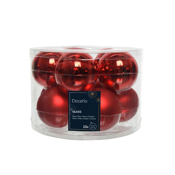 Sada skleněných ozdob červená 6cm/10ks