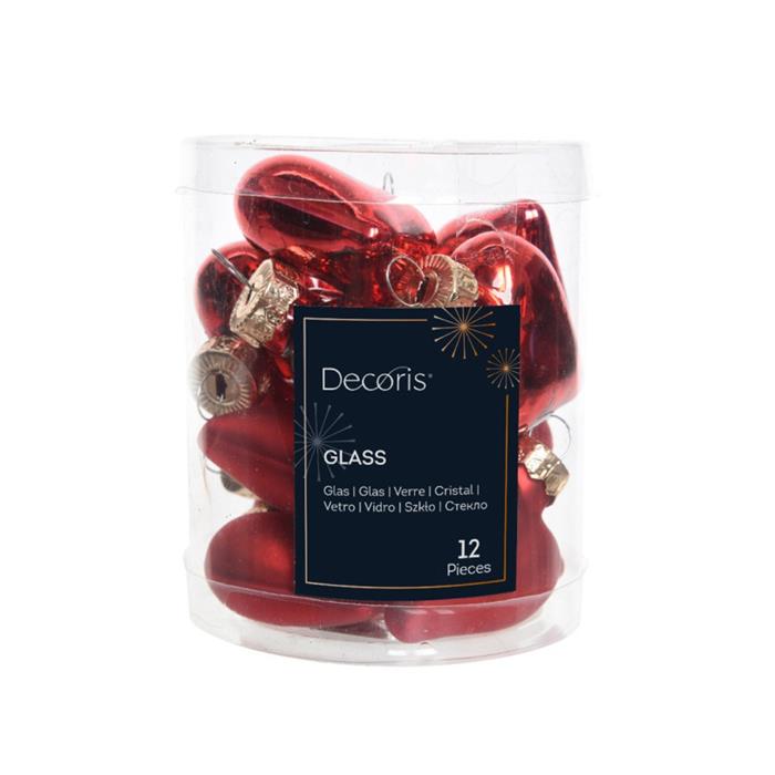 Sada skleněných ozdob srdce červené 4cm/12ks
