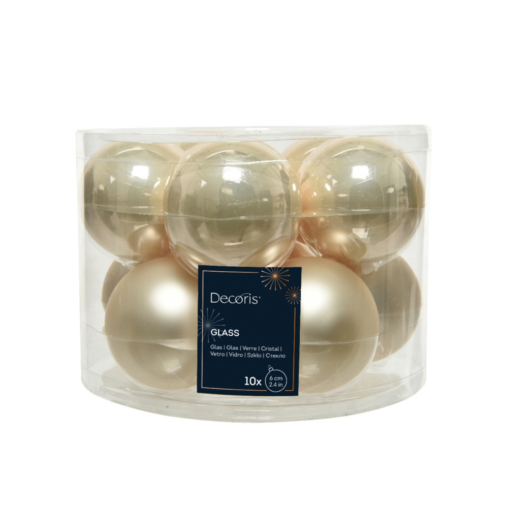 Elegantní skleněné ozdoby v perleťové barvě v kombinaci lesklého a matného provedení dodají vašemu vánočnímu stromku jemný a luxusní vzhled. Ideální velikost pro menší stromečky, věnce či stolní aranžmá.