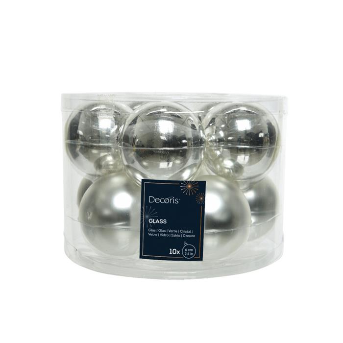 Sada skleněných ozdob stříbrná 6cm/10ks