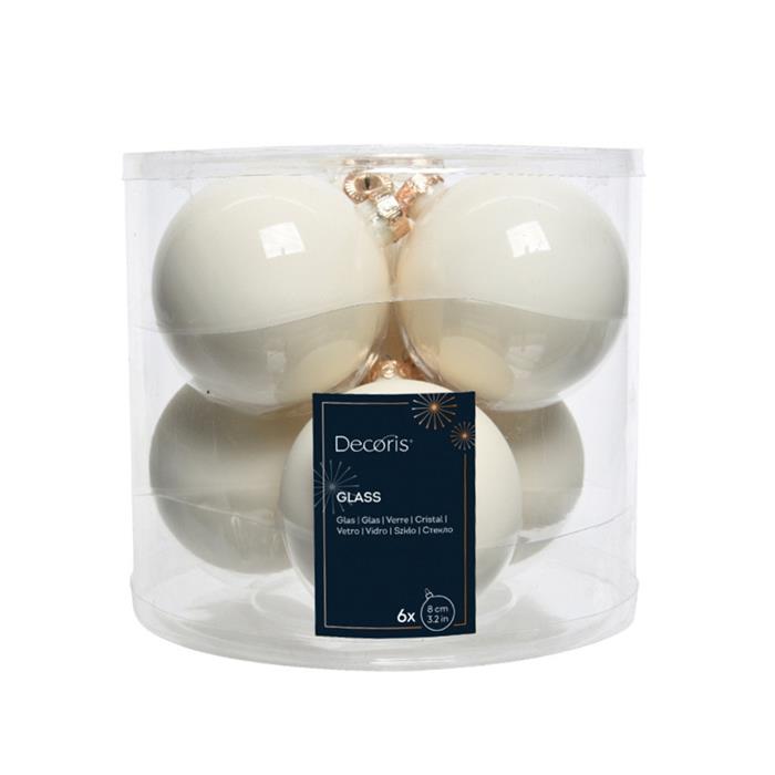 Elegantní skleněné ozdoby v barvě slonové kosti v kombinaci lesklého a matného provedení dodají vašemu vánočnímu stromku jemný a luxusní vzhled. Ideální velikost pro středně velké stromečky či aranžmá.