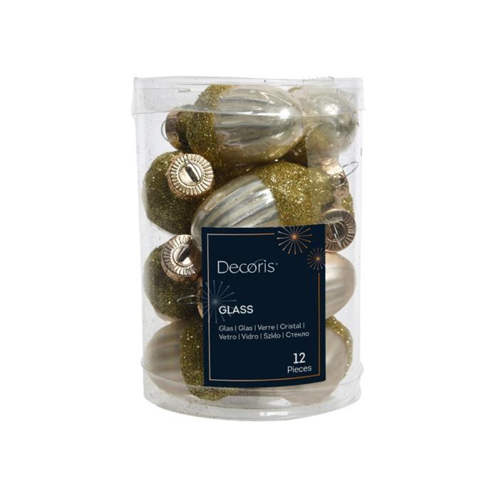 Sada skleněných ozdob žaludy s glitry perleťové 12ks
