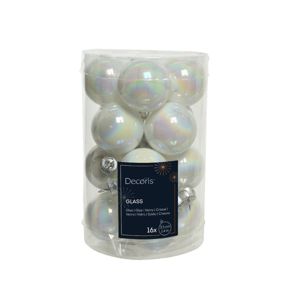 Sada skleněných ozdob duhová bílá 3,5cm/16ks
