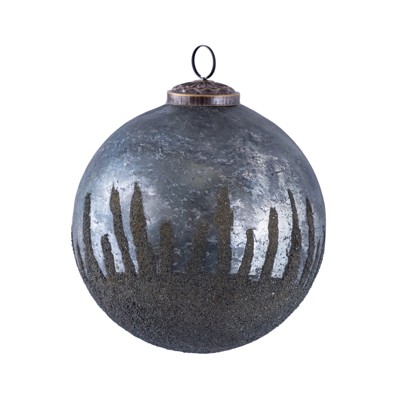 Ozdoba koule skleněná WALTER stíraná s glitry šedá 12cm