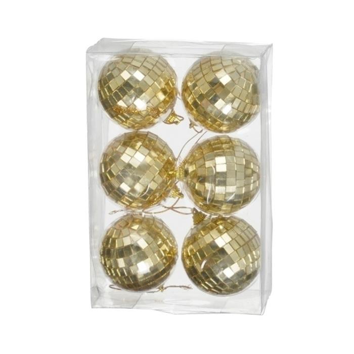 Sada skleněných ozdob - zrcadlové koule zlaté 6cm/6ks