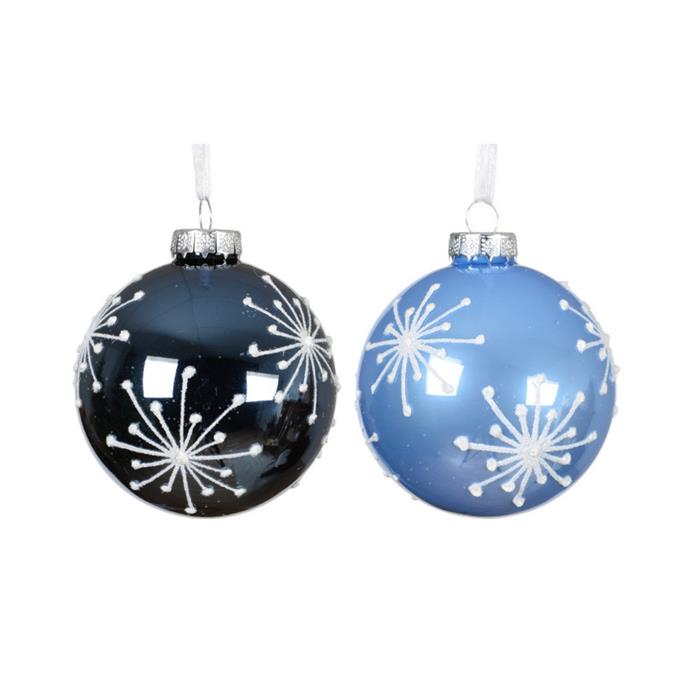 Vneste do své vánoční výzdoby nádech elegance a klidné zimní noci s touto nádhernou skleněnou koulí. Tato ozdoba o průměru 8 cm se pyšní lesklým povrchem v sytých modrých odstínech, které evokují noční oblohu a kreslenými hvězdami, které symbolizují sváteční záři a naději. Ozdoba v mixu provedení. Pokud si přejete konkrétní variantu, napište ji do poznámky, pokusíme se vyhovět. V případě nedostupnosti bude odeslán náhodný kus.