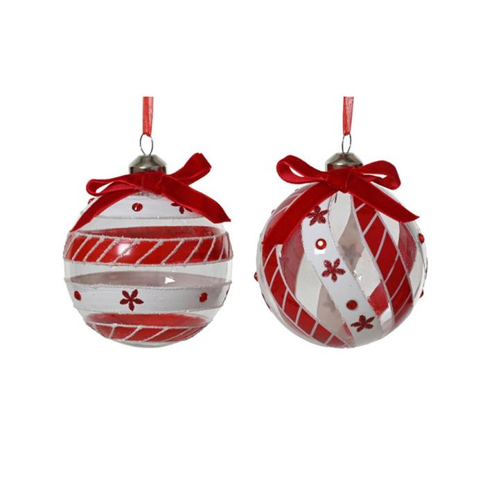 Ozdoba skleněná koule s proužky/spirálou bílo-červená mix 8cm