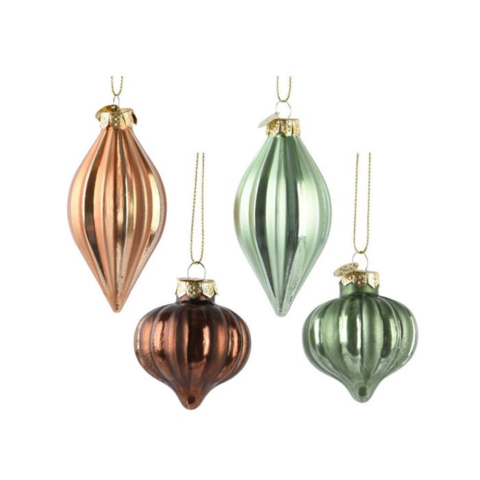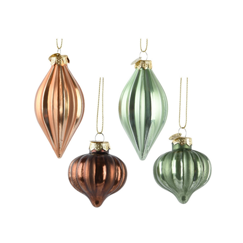 Přidejte na svůj vánoční stromeček prvek elegance a přírodní krásy s touto skleněnou ozdobou. Tyto malé ozdoby mají originální tvar olivy nebo cibule, což je odlišuje od klasických koulí. Ozdoba v mixu provedení. Pokud si přejete konkrétní variantu, napište ji do poznámky, pokusíme se vyhovět. V případě nedostupnosti bude odeslán náhodný kus.
