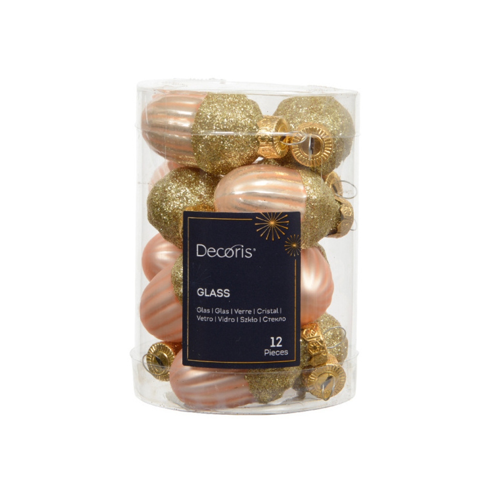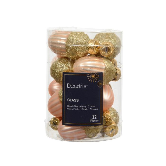 Sada skleněných ozdob žaludy s glitry broskvové 12ks