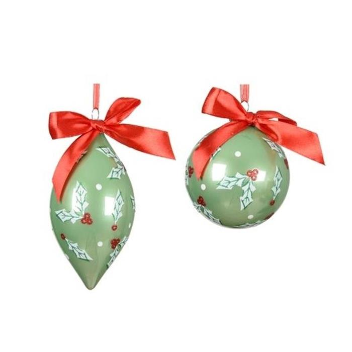 Ozdoba skleněná koule/oliva s cesmínou mix 8cm
