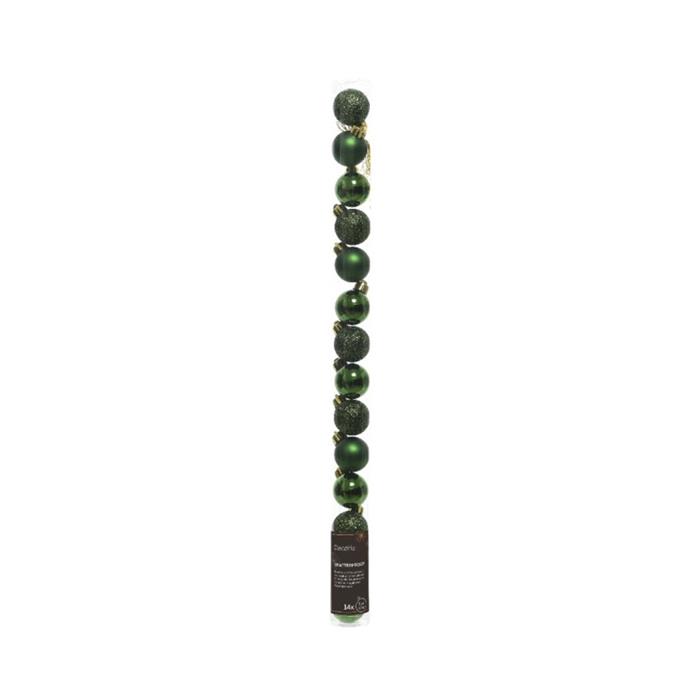 Sada plastových ozdob tm.zelená 3cm/14ks