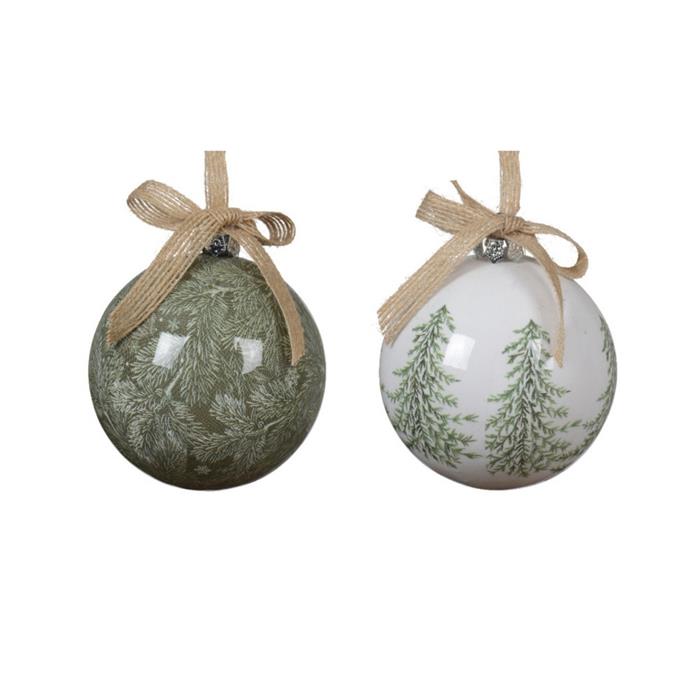 Ozdoba plastová koule větve/stromy bílá/zelená mix 8cm