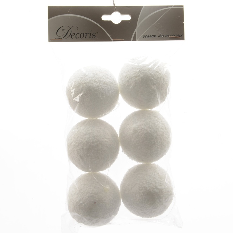 Sada šesti bílých pěnových koulí s jemným sněhovým efektem, o průměru 8 cm, vnese do vašeho domova zimní pohodu a klid. Tyto lehké ozdoby jsou ideální na vánoční stromek, do věnců či stolních dekorací. Přirozená krása zasněženého vzhledu dodá vaší výzdobě zimní atmosféru plnou elegance.