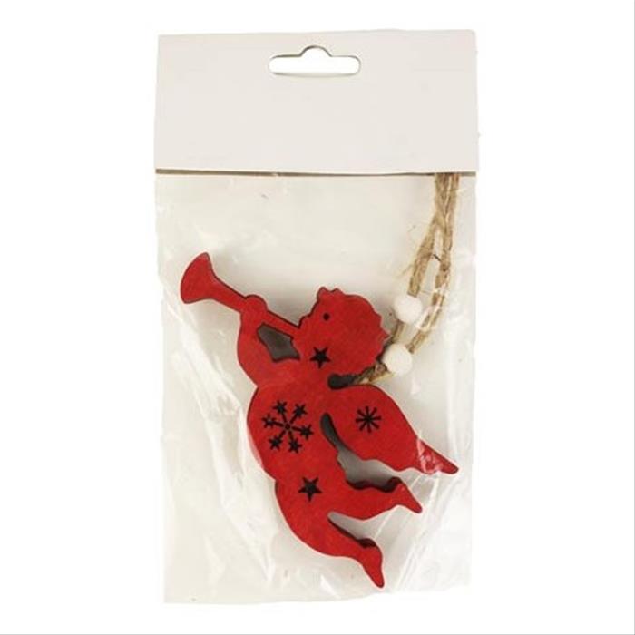 Popis produktu Ozdoba anděl s trubkou dřevěný 9,5cm 2ks červená