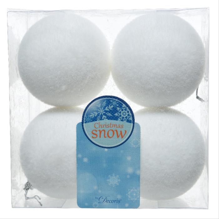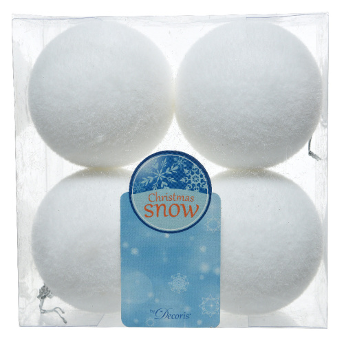 Čtyři bílé pěnové koule se zasněženým povrchem navodí tu pravou zimní atmosféru. Díky své lehkosti a neutrální barvě jsou ideální pro sváteční aranžmá, dekorace na stůl, do mís nebo jako doplněk k vlastnoručnímu tvoření. Jednoduchý, ale efektní prvek pro váš vánoční domov.