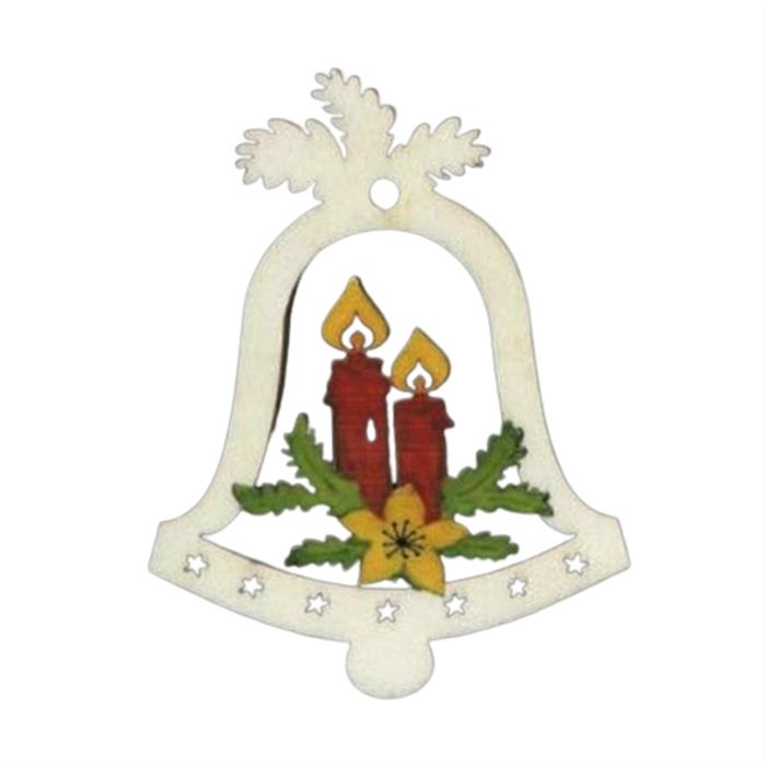 Ozdoba zvonek se svíčkami dřevěný 9cm
