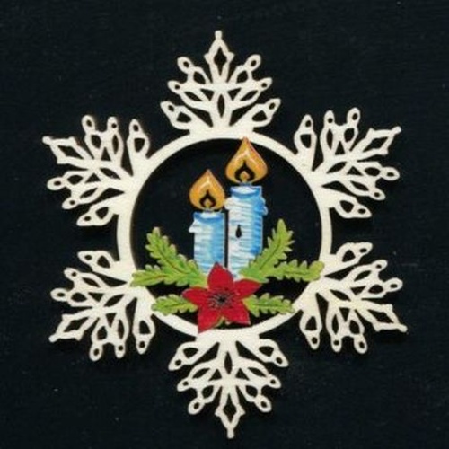 Ozdoba vločka se svíčkami dřevěná 9cm