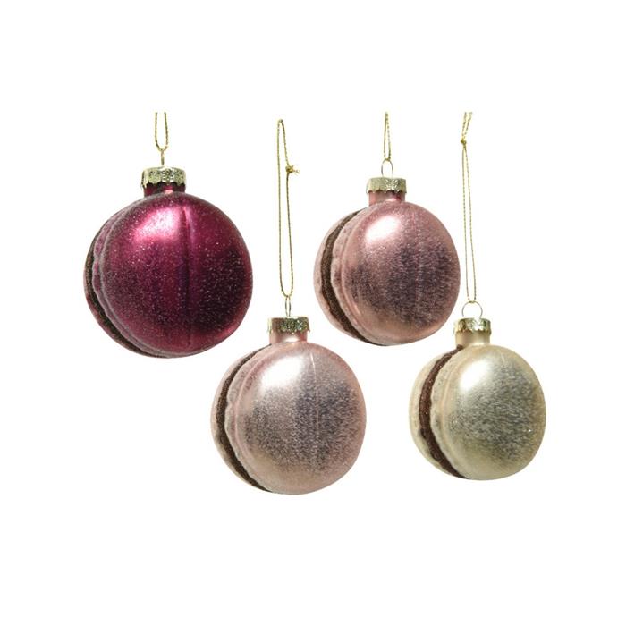 Přineste na svůj vánoční stromeček sladkou eleganci s touto originální skleněnou ozdobou ve tvaru makronky. Každý kousek je zdobený jemnými glitry, které dodávají vánočním sladkostem třpytivý a slavnostní vzhled. Díky mixu barev si můžete vytvořit hravý a pestrý vánoční dekor plný radosti a něžnosti. Ozdoba v mixu provedení. Pokud si přejete konkrétní variantu, napište ji do poznámky, pokusíme se vyhovět. V případě nedostupnosti bude odeslán náhodný kus.